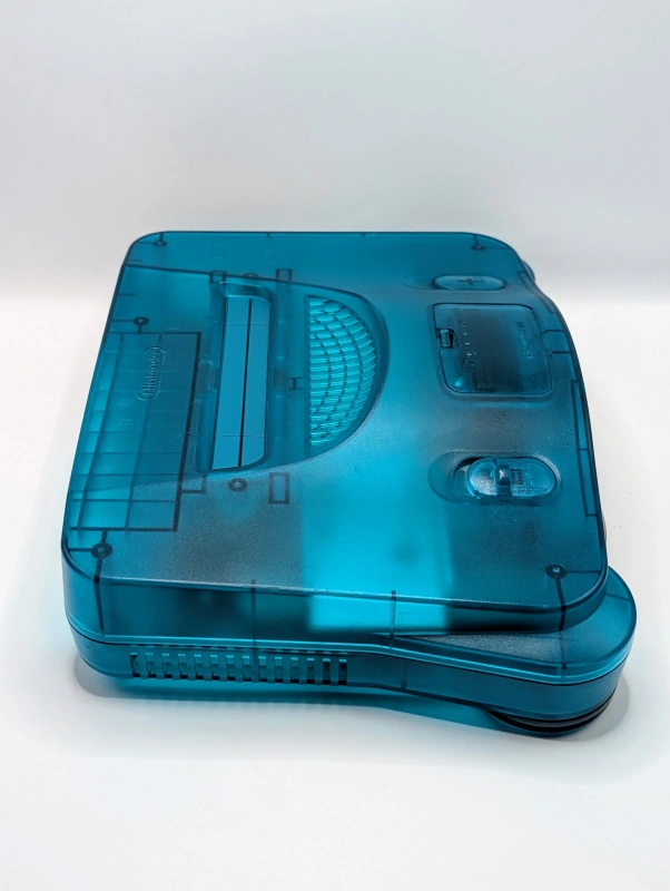 The Fantastic N64 Blue is a reference to the Funtastic Series of Nintendo 64 consoles, a line of translucent, brightly colored systems released in 1999. The “Funtastic Blue” console features a see-through blue plastic casing, allowing you to see the console’s internal components. This vibrant color was part of a series that included green, purple, orange, and other colors, offering a more playful and distinct look compared to the standard charcoal gray model.