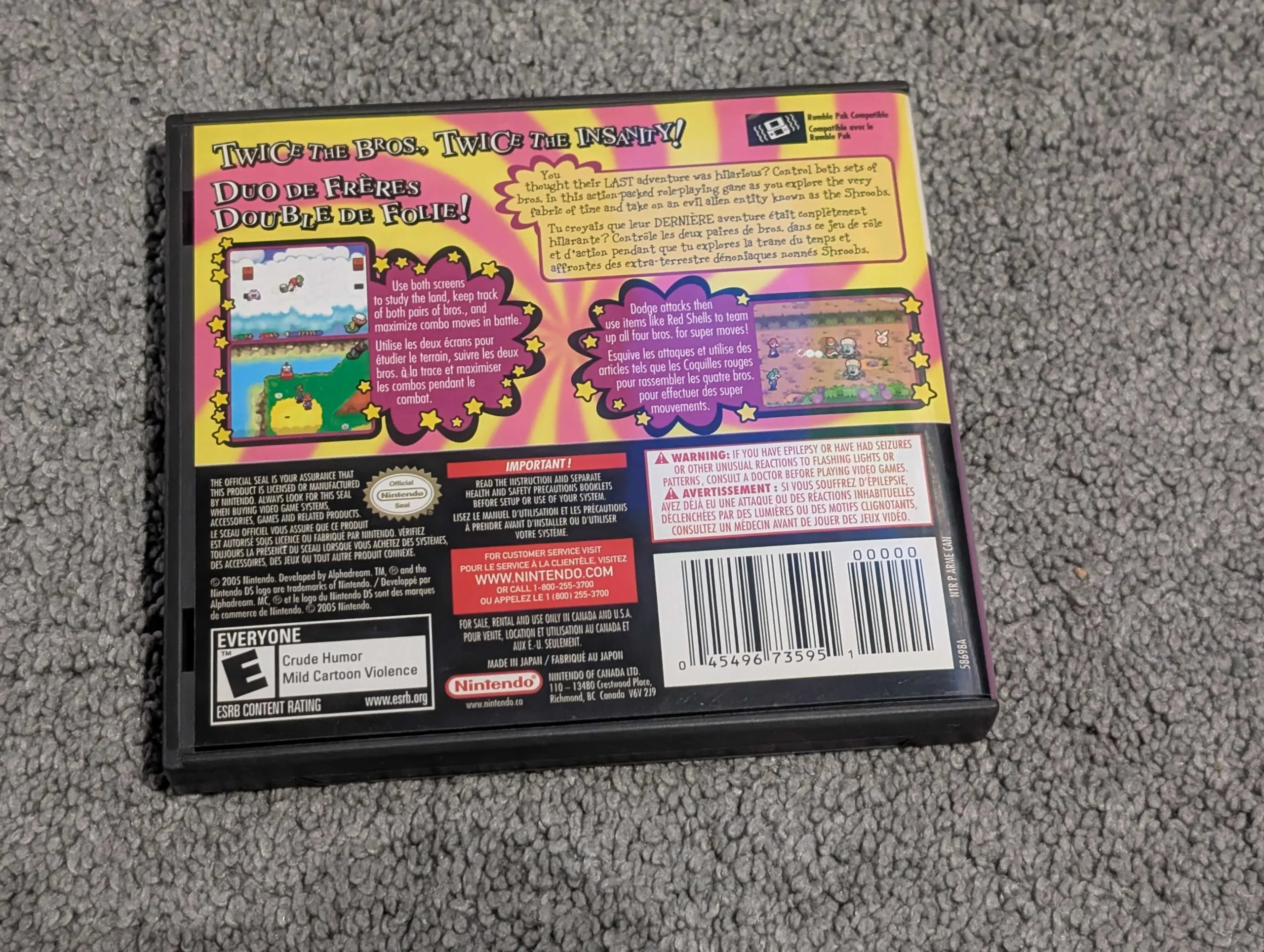 Travel through time in this hilarious, action-packed RPG that doubles the mayhem by teaming up Mario and Luigi with their younger, diaper-wearing selves! Control all four brothers simultaneously to solve clever puzzles and unleash devastating “Bros. Items” on enemies in rhythmic, turn-based combat. With a charming story that pits the Mushroom Kingdom against the mysterious Shroob invasion, this Nintendo DS classic is a must-play for fans of sharp writing and inventive gameplay. It’s twice the brothers, twice the adventure, and an absolute essential for your handheld collection!