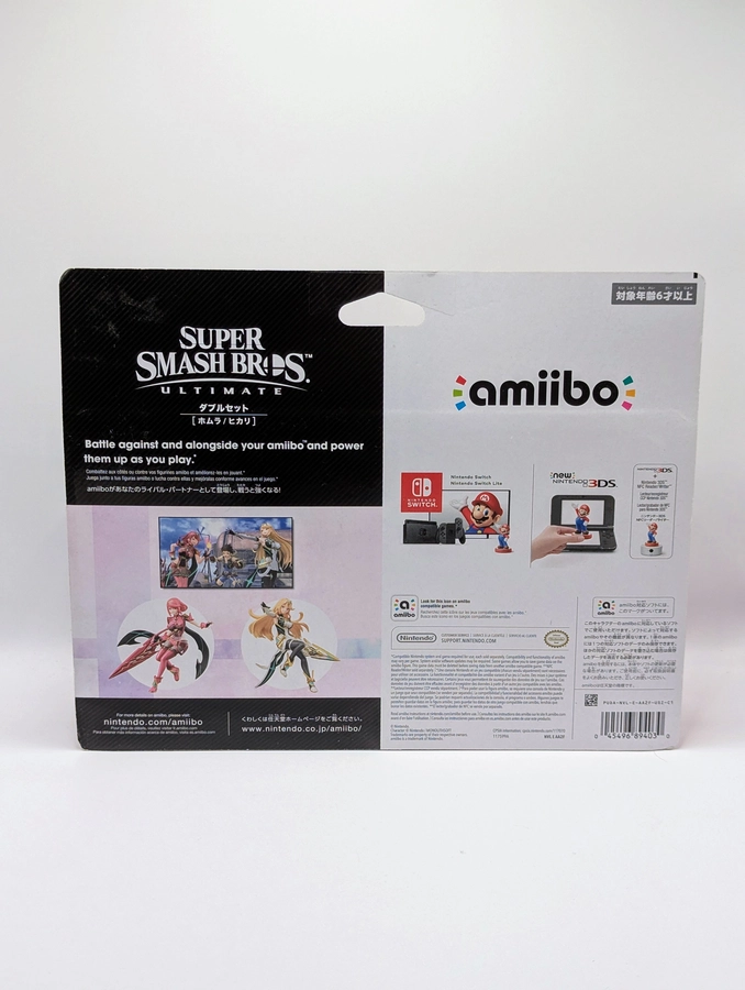 Bring the legendary Aegis Blades from Xenoblade Chronicles 2 straight to your collection with the Pyra and Mythra amiibo 2-Pack! These stunning, highly-detailed figures perfectly capture the dual personalities of the same powerful entity—the fiery and kind Pyra, and the confident, light-based Mythra—in one essential set. Originally created for their appearance as DLC fighters in Super Smash Bros. Ultimate, where they can be trained to fight as your in-game partner, these amiibo also unlock exclusive Aegis Sword weapon skins for the Swordfighter class in Xenoblade Chronicles 3 and other bonuses in compatible Nintendo Switch titles. This double pack is a gorgeous, must-have collector’s item for both Xenoblade and amiibo fans!