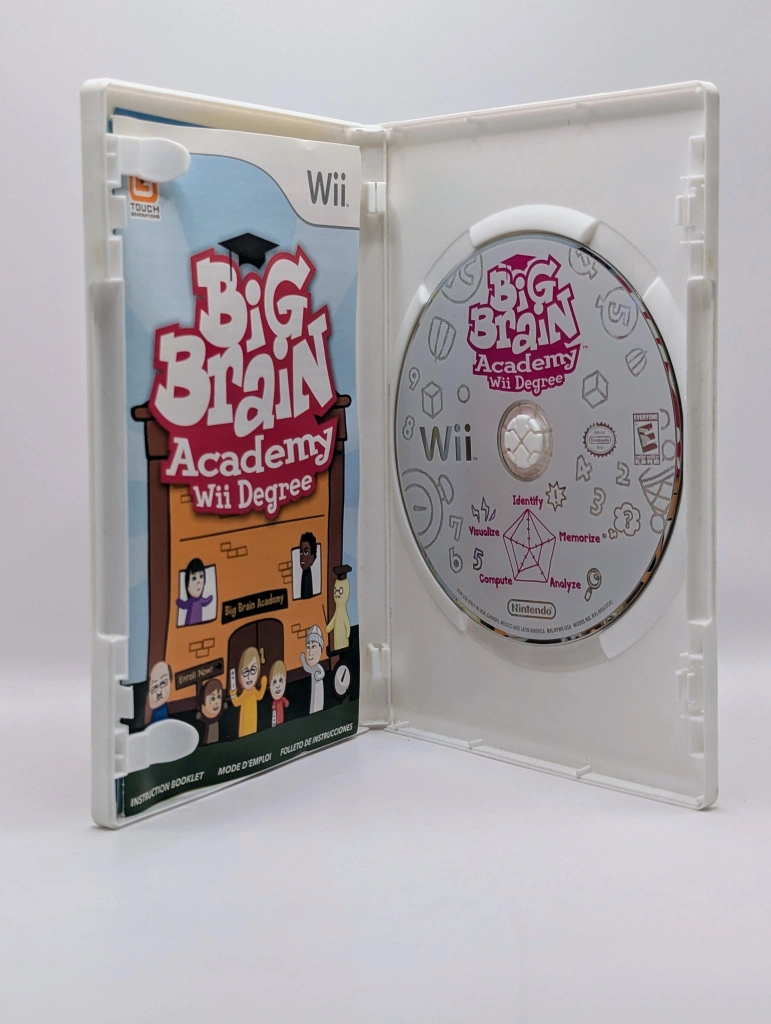 Sharpen your mind and challenge your friends in Big Brain Academy: Wii Degree, the high-energy sequel that brings the hit brain-training series to the big screen. Led by the quirky Dr. Lobe, you’ll dive into 15 fast-paced minigames across five mental categories—Identify, Memorize, Analyze, Compute, and Visualize—all designed to measure the “weight” of your brain in grams. This Wii edition transforms the solo experience into a raucous party game, supporting up to eight players in competitive and cooperative modes like “Mind Sprint” and “Mental Marathon.” Whether you’re popping numbered balloons, identifying distorted images, or racing to complete paintings, the intuitive Wii Remote pointer controls and charming Mii integration make this an accessible and addictive mental workout for every generation of the family.