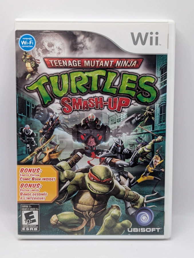 Cowabunga! Celebrate the 25th anniversary of the franchise with TMNT Smash-Up, a wild and frantic 2.5D fighting game that throws the Turtles into an all-out, four-player brawl! Developed by a team who worked on Super Smash Bros. Brawl, this game offers a fun, platform-style fighting experience where you choose from a wide roster of heroes and villains, including Leonardo, Shredder, April O’Neil, and the Rabbids (in the Wii version!). The action is fast-paced, featuring interactive stages loaded with traps and hazards, plus the unique ability to climb and attack from walls, emphasizing the ninja acrobatics. Featuring an original story co-created by TMNT co-creator Peter Laird, this is a must-have for fans looking for a high-impact, multiplayer party fighter!