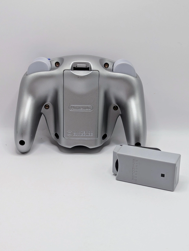 Experience the freedom of untethered gaming with the Platinum WaveBird Wireless Controller, the first official wireless controller from Nintendo. Combining the legendary ergonomics of the standard GameCube pad with rock-solid 2.4GHz RF technology, the WaveBird allows you to play from up to 20 feet away without the need for a direct line of sight. Its sleek silver finish and heavy-duty build make it a must-have for any GameCube or Wii setup, offering over 100 hours of gameplay on just two AA batteries.