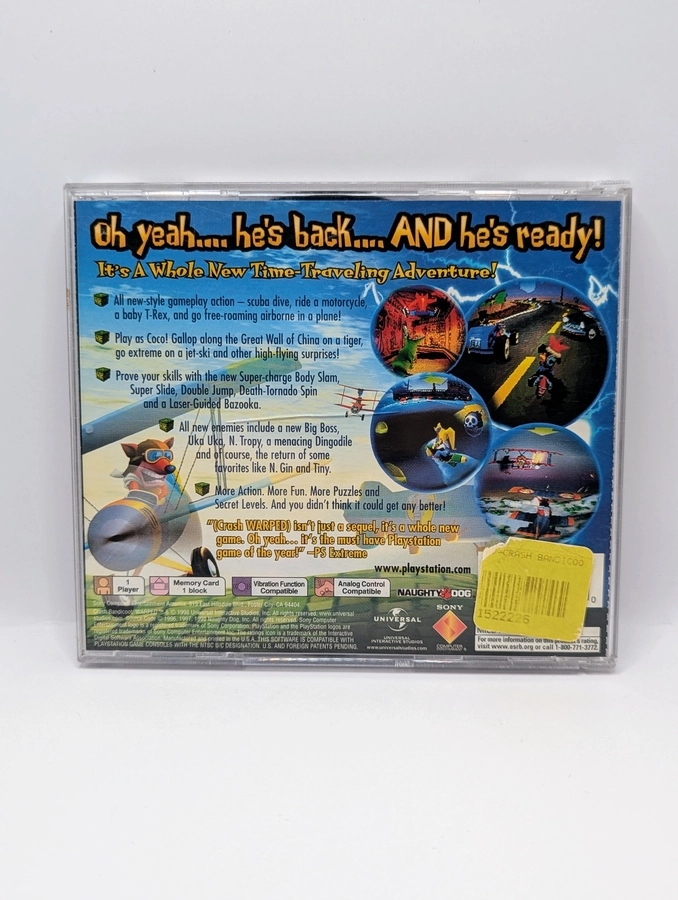 Crash Bandicoot: Warped is the high-flying, time-traveling pinnacle of the original PlayStation trilogy, delivering an incredible variety of gameplay that goes far beyond traditional platforming. As Crash or Coco, you’ll leap through medieval England, jet-ski across the Caribbean, race motorcycles in the 1950s, and even engage in aerial dogfights over World War I. This installment introduced the game-changing Power-Up system, rewarding you with abilities like the Double Jump, Death Tornado Spin, and the fan-favorite Fruit Bazooka as you defeat iconic bosses like Dingodile and Dr. N. Tropy. With its vibrant 32-bit visuals, tight “Time Trial” challenges for added replay value, and a perfect blend of slapstick humor and challenging obstacles, Warped remains a masterclass in creative level design and pure arcade fun.
