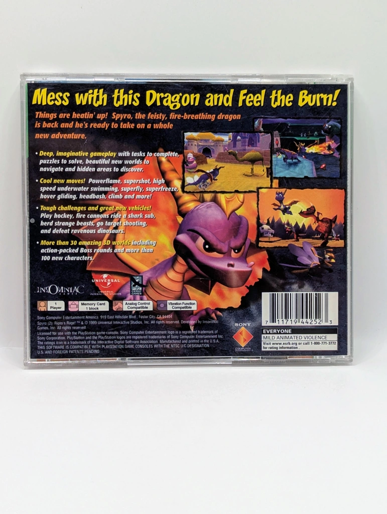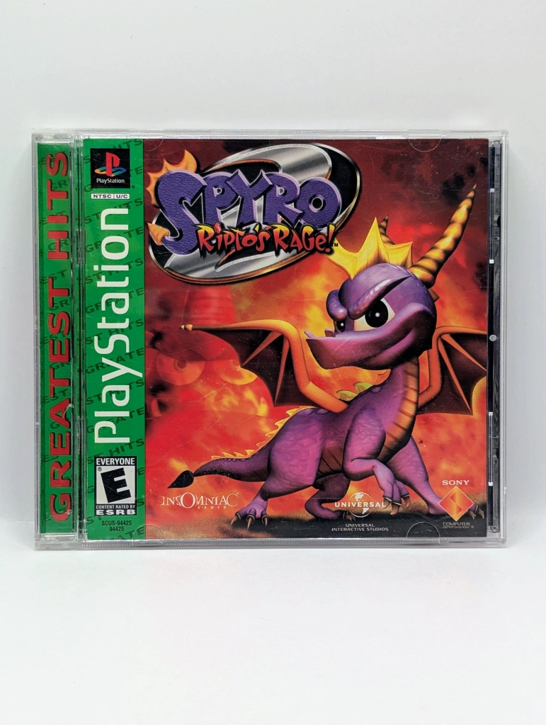 Glide back into the Dragon Realms and beyond in Spyro 2: Ripto’s Rage!, a vibrant and charming adventure that significantly expands on the original’s exploration-heavy gameplay. After accidentally being summoned to the land of Avalar, Spyro must help Elora, Hunter, and the Professor defeat the diminutive but hot-tempered tyrant Ripto and his dim-witted henchmen, Crush and Gulp. This “Greatest Hits” edition delivers the quintessential 3D platforming experience, introducing game-changing abilities like swimming underwater, climbing, and head-bashing to navigate diverse worlds—from the sun-drenched Glimmer to the autumn-hued Summer Forest. With its catchy Stewart Copeland soundtrack, witty NPC dialogue, and a massive collection of talismans and orbs to hunt for, this sequel is a masterclass in personality-driven level design that rewards every bit of curiosity and skill.
