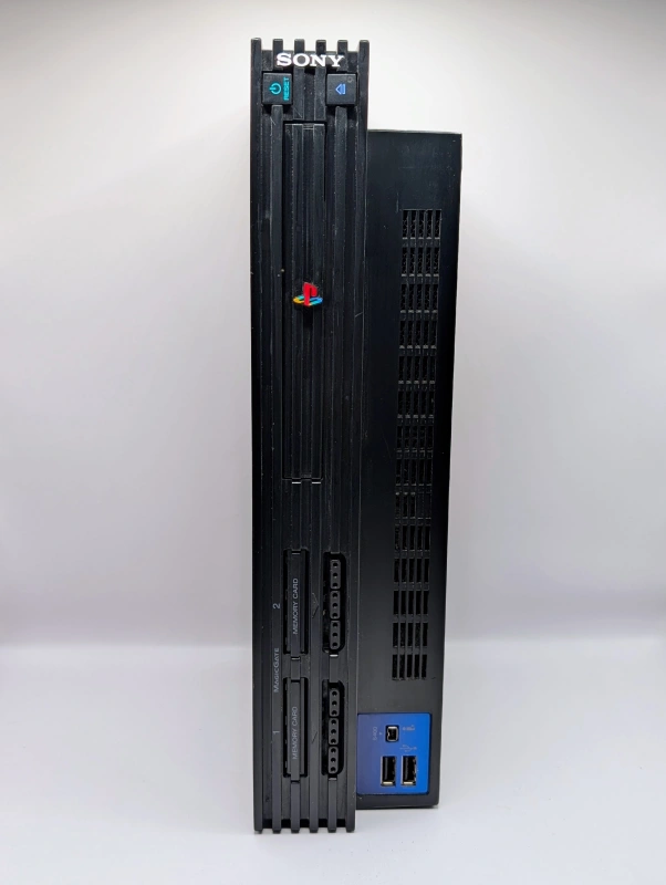 The PlayStation 2 Fat is the iconic, original design of the world’s best-selling home console. Released in 2000, it features a distinctive, bulky, black vertical-standing or horizontal-lying chassis with a front-loading disc tray. The PS2 Fat’s main selling points were its powerful Emotion Engine CPU and its integrated DVD player, which provided affordable multimedia capabilities that were revolutionary at the time. Crucially for enthusiasts, the “Fat” models are the only ones that feature an expansion bay for an optional internal Hard Disk Drive (HDD), making them the preferred choice for retro gaming mods and enhanced functionality. It also retained full backward compatibility with the entire PlayStation 1 library.