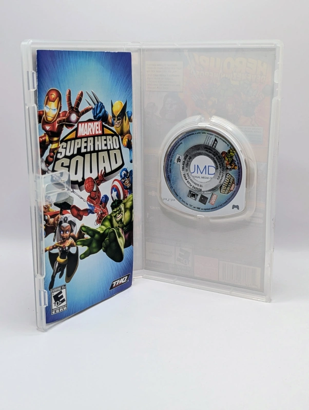 Marvel Super Hero Squad on the PSP is a fast-paced, action-packed beat ’em up designed for younger players, bringing the humorous, cartoon-style universe of the animated series to a portable format. Players can choose from a roster of over 20 fan-favorite heroes and villains—including Iron Man, Captain America, Wolverine, and Doctor Doom—each featuring their own unique “Heroic” and “Squaddie” attacks. The game features a story-driven single-player campaign where you battle Doctor Doom’s Lethal Legion across various iconic Marvel locations, alongside a deep, customizable cooperative mode. Focusing on accessibility and fun, it’s a great choice for introducing Marvel’s classic characters to new fans with its vibrant visuals and lighthearted, button-mashing combat.
