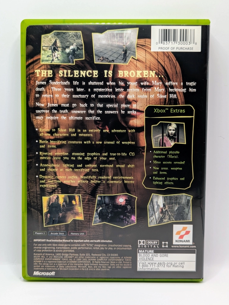 Experience the definitive console version of the greatest psychological horror game ever told. Silent Hill 2: Restless Dreams takes the haunting journey of James Sunderland and expands it with the “Born from a Wish” sub-scenario, allowing you to play as the enigmatic Maria. This Xbox-exclusive release (later released as “Greatest Hits” on PS2) offers enhanced technical features including 480p support and improved flashlight lighting. Journey into the fog-shrouded town to confront your past, solve complex riddles, and encounter the iconic Pyramid Head in a story that explores the deepest, darkest corners of the human psyche.