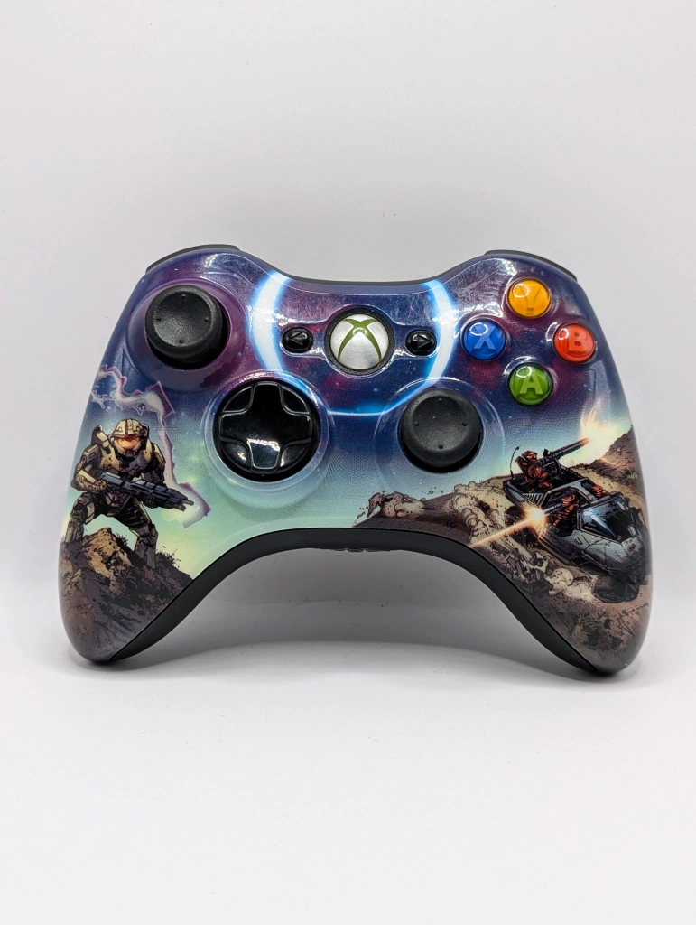 This limited-edition controller, released to celebrate one of the most highly anticipated games of its generation, came in two unique wireless designs—Spartan (featuring Master Chief) or Covenant Brute (featuring an alien Brute Chief). Each variant sports stunning, exclusive artwork from legendary comic book artist Todd McFarlane, applied to a high-quality, scratch-resistant finish. The controllers either feature the striking “Spartan green and gold” color scheme (matching the special edition console) or a distinct Covenant motif. Beyond the incredible aesthetic, it delivers the same tight, responsive performance of the classic Xbox 360 controller, ensuring you can save humanity with precision and style. For Halo fanatics, it was a must-have accessory, often bundled with an exclusive collectible figurine from McFarlane Toys, making it an awesome, powerful piece of gaming history.