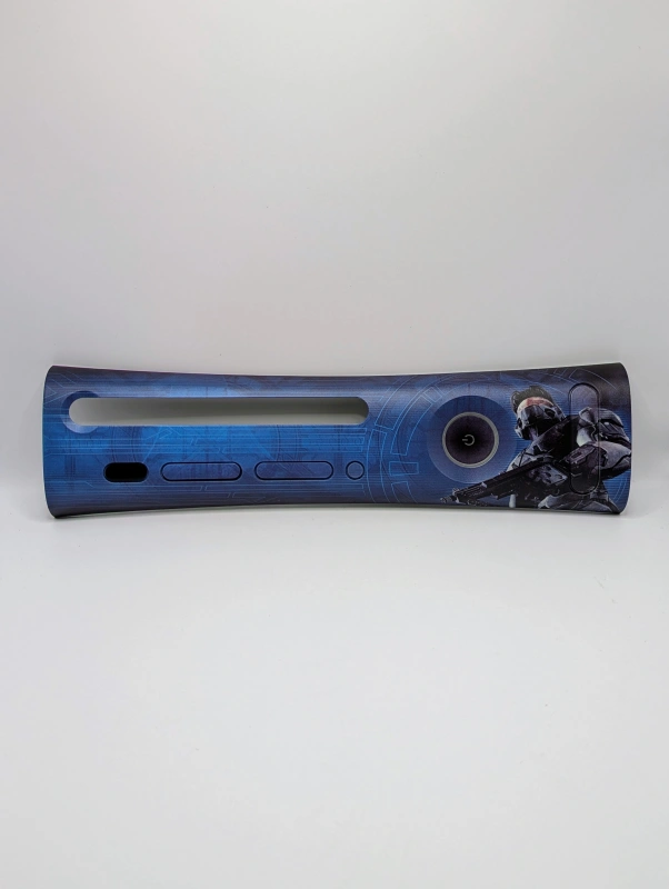 The Halo Faceplate for the Xbox 360 is a classic collectible for fans, designed to replace the standard white front shell of the original “Fat” console with a custom metallic-green and Master Chief-inspired aesthetic.