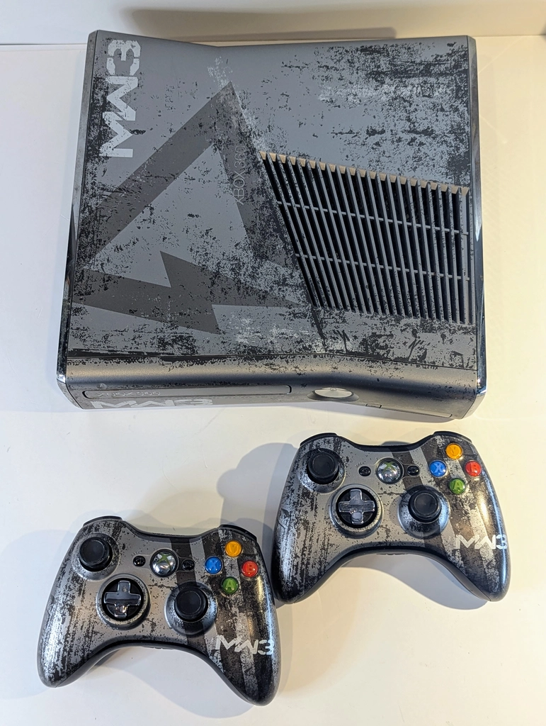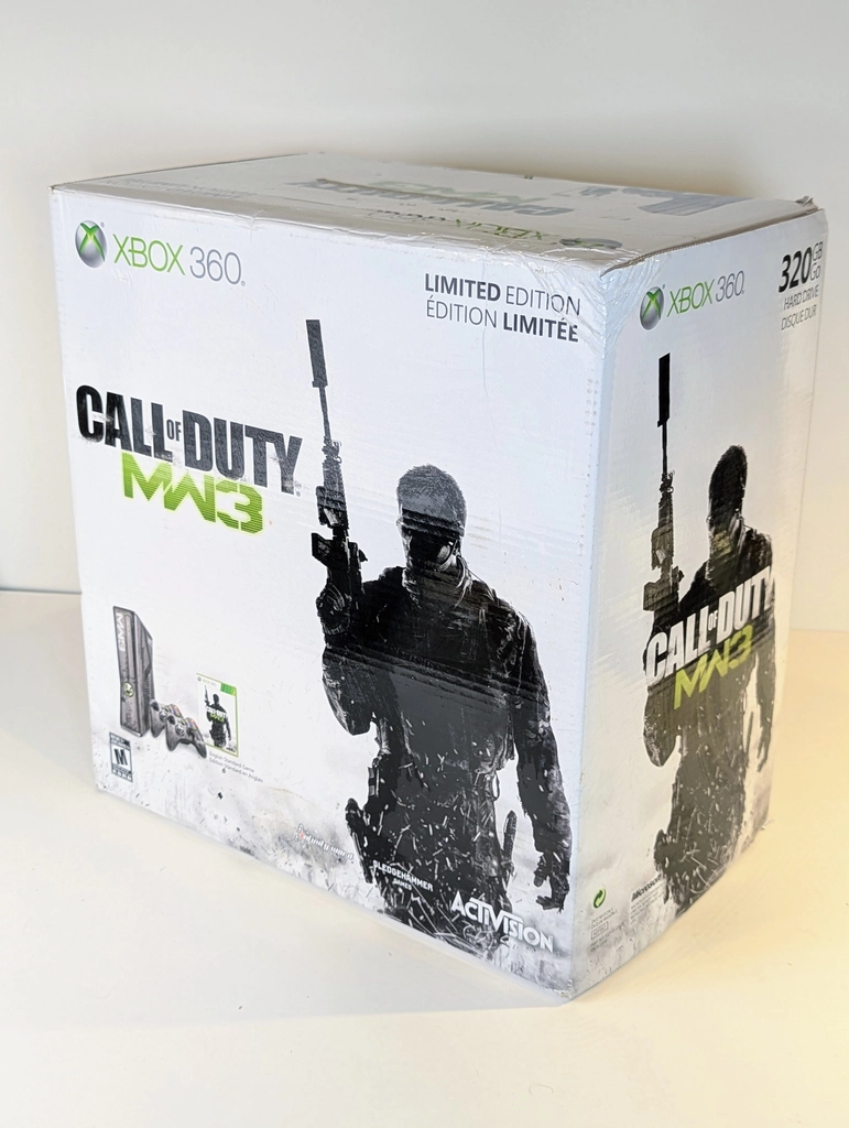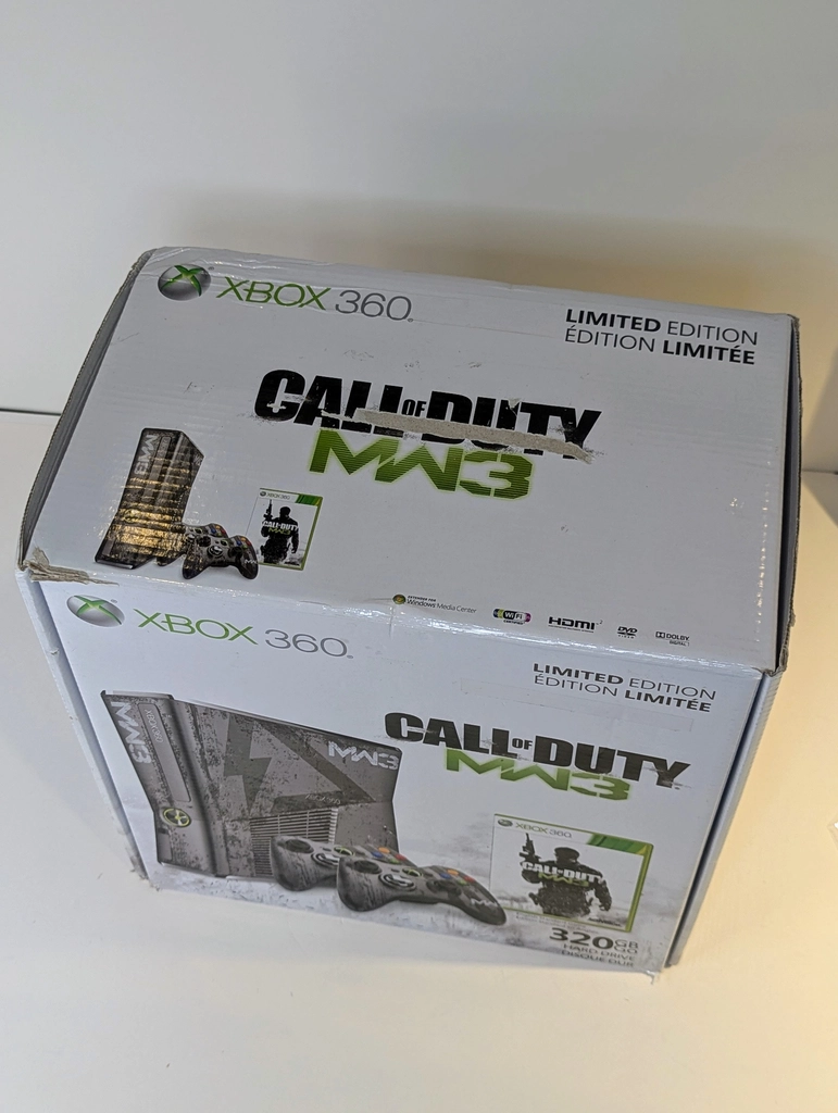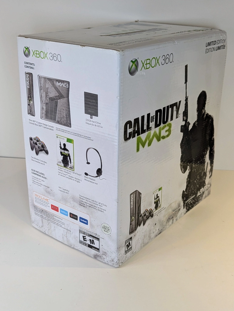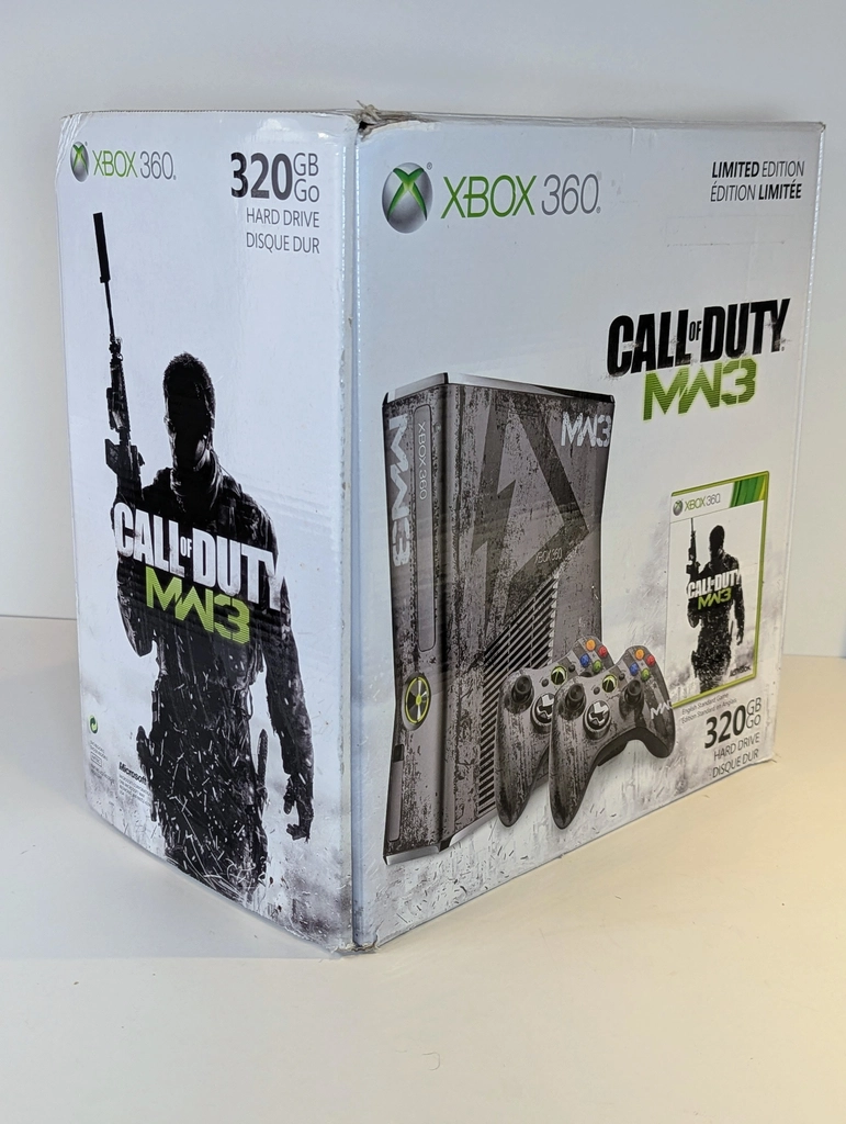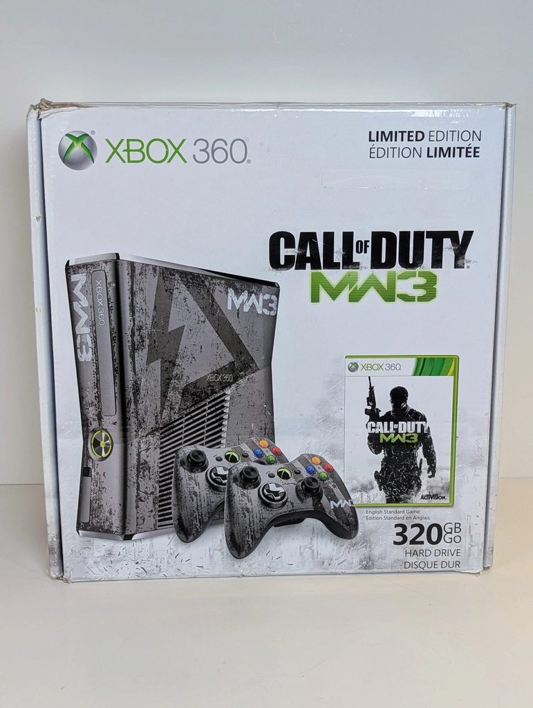Deploy the ultimate tactical centerpiece with the Xbox 360 Limited Edition Call of Duty: Modern Warfare 3 Bundle, a battle-hardened console designed for the most dedicated fans of the franchise. This isn’t just a standard Slim model—it features a custom “worn metallic” skin that mirrors the gritty aesthetic of the game and incorporates exclusive sound effects from the series for the power and eject buttons. This powerhouse comes factory-equipped with a massive 320GB hard drive, the largest ever released for the 360, giving you unparalleled space for your entire combat library and media.