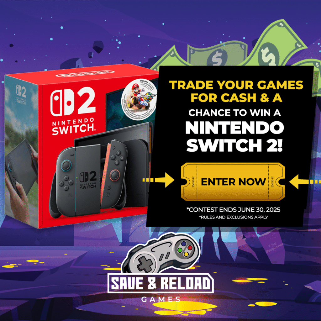 Edmonton, Do you have old video games, consoles, or accessories collecting dust? Now’s the perfect time to trade them in! From June 16 to June 30, 2025, every $10 in trade-in value you complete with Save and Reload Games earns you one entry into our epic giveaway — a brand-new Nintendo Switch 2 Mario Kart World Bundle (valued at $735 CAD). Whether you’re trading online or in person, each qualifying trade brings you closer to winning big!